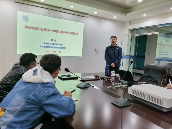 应bevictor伟德官网机械结构力学及控制国家重点实验室张助华教授邀请,大连理工大学工程力学系主任、国家杰青郭旭教授于2019年11月26日至28日访问公司,并于11月27日为公司师生做了题为“移动可变形组件法-一种结构拓扑优化新框架”的学术报告。