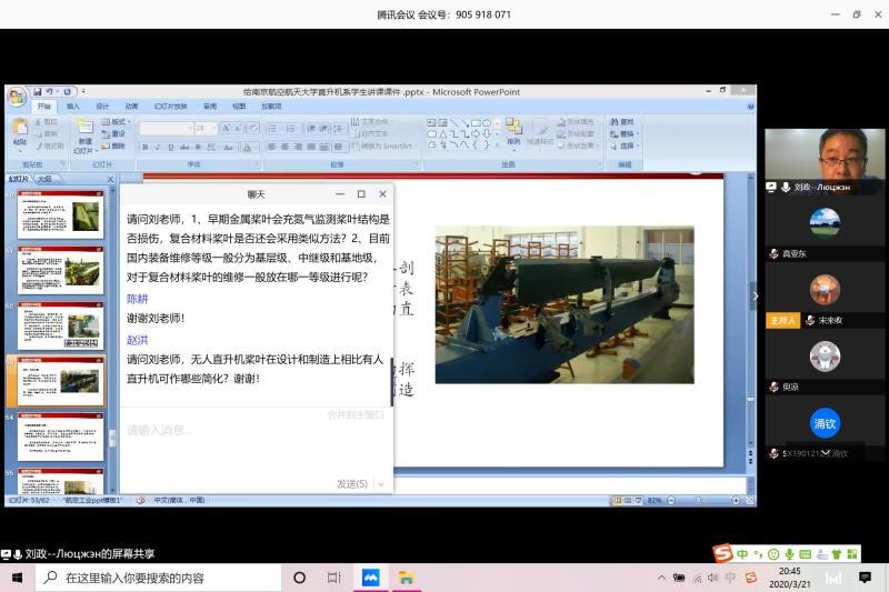 3月21日,bevictor伟德官网开展了哈飞-南航校企协同育人平台线上专题第二场报告会。航空工业哈尔滨飞机工业集团公司飞机设计所研究员刘政受邀以视频直播方式为公司师生做了题为“直升机旋翼结构设计与制造”的学术报告。报告会由直升机系主任高亚东主持,公司师生一百五十余人在线参加了此次报告会。