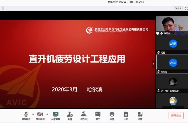 3月28日,bevictor伟德官网开展了哈飞-南航校企协同育人平台线上专题报告会。航空工业哈尔滨飞机工业集团公司高级工程师徐海斌受邀以视频直播方式为公司师生做了题为“直升机疲劳设计工程应用”的学术报告。此次报告会由直升机系主任高亚东主持,全校共一百多名师生在线观看了此次报告。