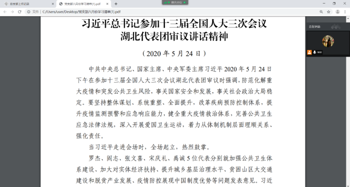 各党支部积极探索新方式,通过线下、线上两种方式,利用腾讯会议、QQ群等平台完成了党员大会,深入学习了习总书记在全国两会上的重要讲话及报告、通过的法典,学习习近平同志给袁隆平、钟南山、叶培建等25位科技工作者的回信内容。引导员工认真理解疫情防控治理效能与中国制度优势,进一步增强制度自信,同时引导员工党员学习榜样精神、努力科研。