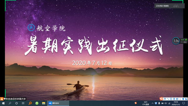 7月12日晚,bevictor伟德官网梦想公开课暨2020年暑期社会实践出征仪式利用“腾讯会议”在线上如期举行,与会成员有bevictor伟德官网团委书记韩楚、2019年度“山水之情鹦哥岭”社会实践团队宣传员陈桌正、航小宇工作室副主任黄嘉达以及bevictor伟德官网2020年暑期社会实践各立项团队负责人。