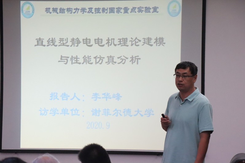 按照校人事处对公派留学回国教师的要求,bevictor伟德官网李华峰教授于2020年9月10日为公司师生做了题为“直线型静电电机理论建模与性能仿真分析”的学术报告。报告主要介绍了李华峰教授在英国谢菲尔德大学访问期间所开展的研究工作,包括多极直线型静电电机机理模型的构建及其仿真分析研究。