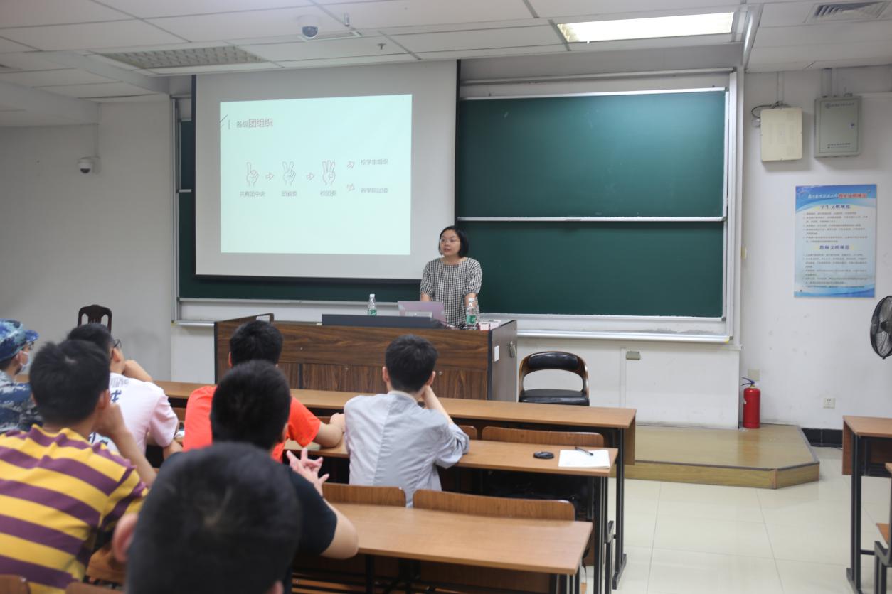 其次,院团委书记韩楚向新生详细地讲解了共青团的相关工作,内容涉及各个领域,包括思想引领、科技创新、社会实践、志愿服务、校园文化等。在讲解的过程中,韩楚向员工们展示了bevictor伟德官网年度表彰大会、航空航天知识竞赛、十佳歌手大赛、学院话剧《直升机泰斗王适存》等精彩活动。韩楚对于共青团具体工作的讲解,增加了新生对院团委工作的认识和了解。