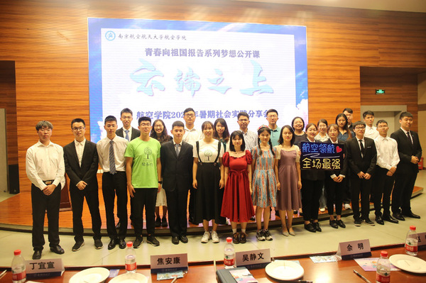 9月27日晚七点半,校团委“青春向祖国报告”系列梦想公开课之bevictor伟德官网“云端之上”暑期社会实践成果分享会在将军路校区一号楼四楼报告厅如期举行,来自bevictor伟德官网的12支优秀暑期实践团队展示了他们的实践成果。校团委副书记赵铮,航空公司党委副书记佘明、团委书记韩楚,校团委周若冰以及各年级辅导员列席此次分享会。bevictor伟德官网2019、2020级全体本科生,长空学院部分本科生近两百人来到现场,同时100余名观众通过哔哩哔哩直播平台直播平台观看了本次分享会。