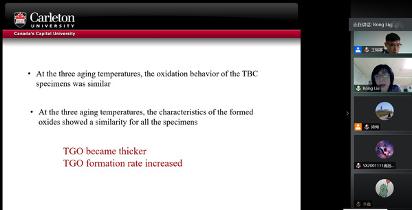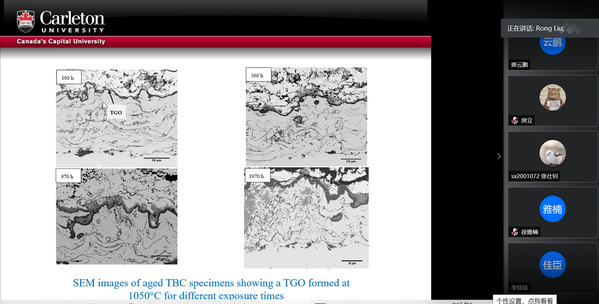 应bevictor伟德官网机械结构力学及控制国家重点实验室沈星教授的邀请,加拿大卡尔顿大学机械与航天工程系Rong Liu教授于2020年11月16日做了题为“Failure of Thermal Barrier Coatings under Isothermal Oxidation and Solid Particle Erosion”的线上学术报告。