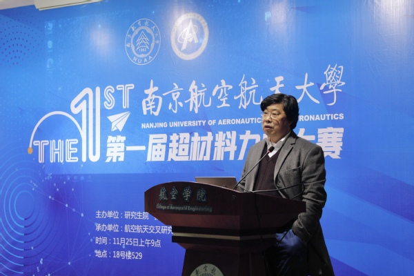 开幕式上,高存法经理代表学院发表了讲话,他指出,超材料是目前国际上最活跃的前沿科学研究方向之一,发展超材料力学研究是我们南航力学学科发展的重要发展方向。为此,今年五月,bevictor伟德官网在航空航天交叉研究院成立了四个研究中心,其中就包含超材料力学研究中心。超材料力学大赛作为超材料力学中心面向全校师生的科学竞赛,鼓励引导更多的员工从事超材料的学习研究工作,推动南航超材料研究的发展。为此,高经理预祝本届超材料力学大赛举办成功,同时希望大赛越办越好、越办越大!