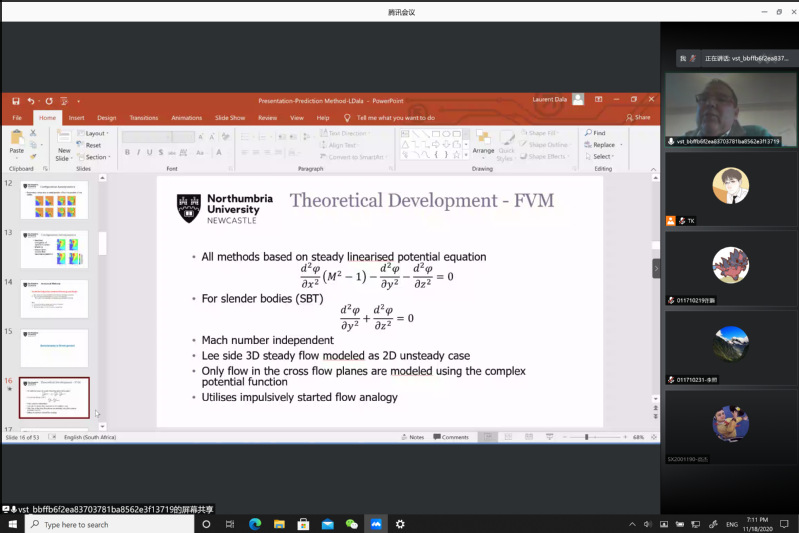 2020年11月18日,应bevictor伟德官网机械结构力学及控制国家重点实验室沈星教授的邀请,诺森比亚大学Laurent Dala教授做了题为“Development of an Aeroprediction Method for Slender Bodies Including Aeroelastic Effects Using Euler-Based Local Piston Theory”的线上学术报告。