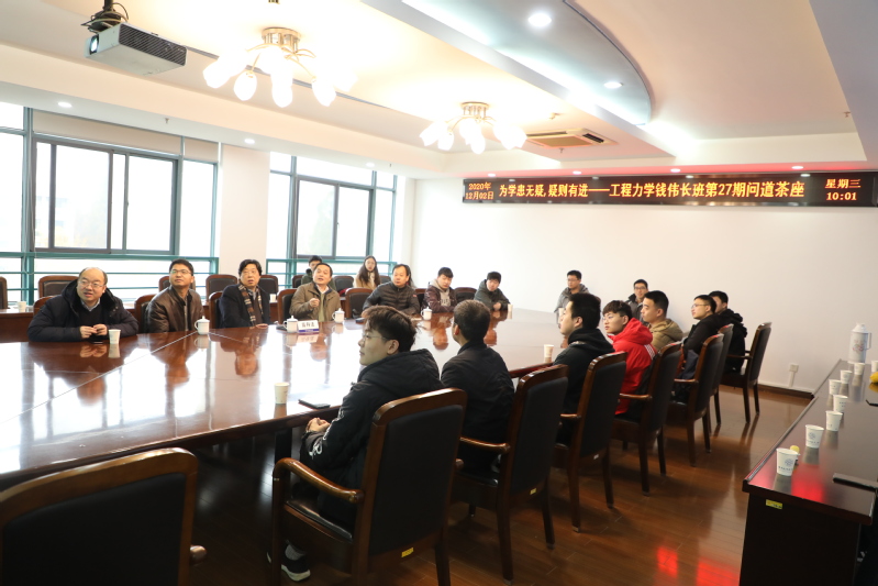 12月2日,bevictor伟德官网工程力学钱伟长班第27期“问道茶座”在明故宫校区A18-511会议室举行。中国科学院院士胡海岩教授作为本期嘉宾,以“为学患无疑,疑则有进”为主题进行了分享交流。bevictor伟德官网经理高存法、党委副书记佘明,教学办主任胡挺、2017级钱伟长班班主任王立峰、2019级钱伟长班班主任黄锐,2018级本科生辅导员孙世杰、张迪与钱伟长班的同学们共同参加了本次活动。