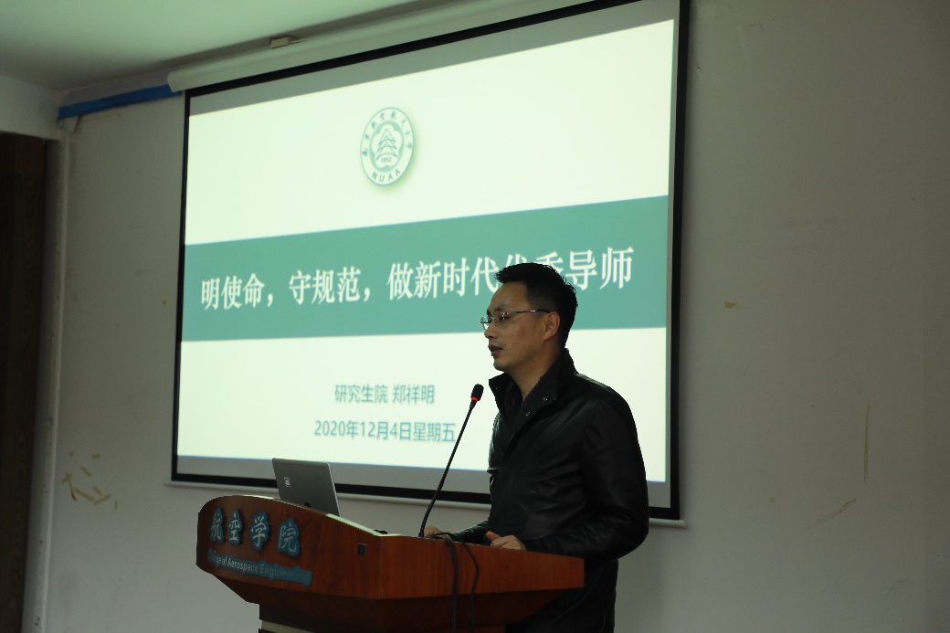2020年12月4日上午,bevictor伟德官网在明故宫校区A18号楼529报告厅举行了研究生导师培训会,公司党委书记冯绍红教授、研究生院副经理郑祥明、学院副经理钱征华教授、直升机系徐国华教授,参加遴选的导师以及教学办相关人员共五十余人参加了此次培训会。会议由航空公司党委副书记佘明主持。