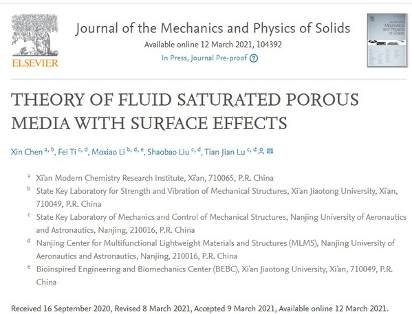 近日,bevictor伟德官网卢天健教授课题组关于跨尺度含液多孔介质弹性理论的最新研究成果被国际固体力学旗舰期刊Journal of the Mechanics and Physics of Solid(JMPS)接受发表。含液多孔介质在自然界和工程中普遍存在,其静/动态力学行为对地震、土木工程、油气开采、航空航天、国防和生物医学等领域的许多现象及应用有重要影响。该理论不仅把在上述领域有广泛应用的多孔弹性理论从唯象宏观尺度推进到微纳孔隙尺度,还量化了固-液界面效应对含液多孔介质力学行为的影响,修正了经典的Biot多孔弹性理论,解决了长期悬而未决的多孔固-液界面效应定量描述的国际力学难题。