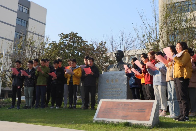 活动最后,全体师生围聚在陶宝祺院士雕塑旁,诵读《聆听时空的对话》,在字里行间找寻先辈的足迹,以时空对话的方式,诵读家国故事,感悟信仰之力、理想之光、使命之艰、担当之要。