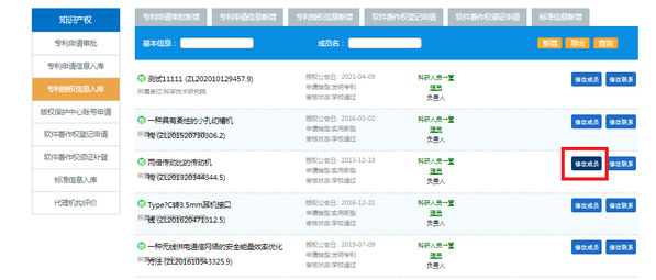 2020年4月科研院已将2019 年12 月31 日之前授权专利信息导入系统,但专利负责人需要进一步完善全体发明人处的身份信息。负责人及参与人员工号等身份信息完善后方可被人事系统采集并利用(姓名无法修改,但可以修改人员类型、工号等信息 )。