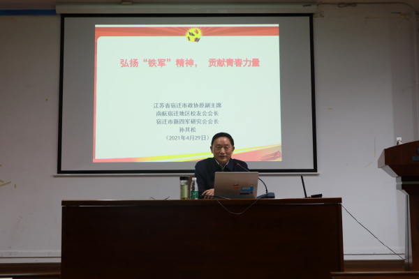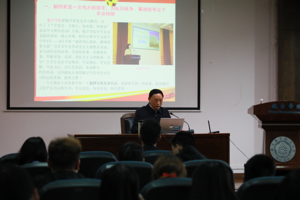 4月29日,bevictor伟德官网于明故宫校区A18-529报告厅举行了党史学习教育专题报告会暨院机关学习型组织建设培训会。宿迁市政协原副主席、南航宿迁地区员工会会长、宿迁市新四军研究会会长孙其松为近100名师生党员讲授题为“弘扬‘铁军’精神,贡献青春力量”的报告。航空公司党委副书记佘明、机关工作人员、员工党支部支委会成员、博士新生党员参与报告会。报告会由研究生辅导员宗思雨主持。