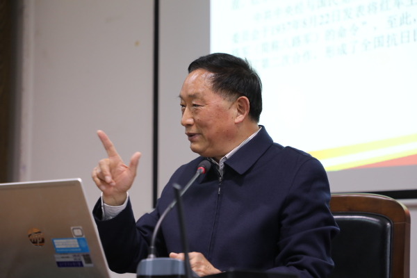 孙其松从新四军成立的背景、历史进程及重要历史人物及事件等多个方面向在场师生全方位讲述了新四军的发展历程。他分别以叶挺、陈毅、阎道彰、吴运铎、周纯麟、刘少奇、彭雪枫等多位革命英雄人物为例,以小见大、由浅入深的将新四军“铁的信念、铁的意志、铁的团结、铁的纪律、铁的作风”的“铁军”精神深深的烙印在在场师生心中。孙其松鼓励在场师生,要弘扬“铁军”精神,在新时代贡献自己的青春力量。