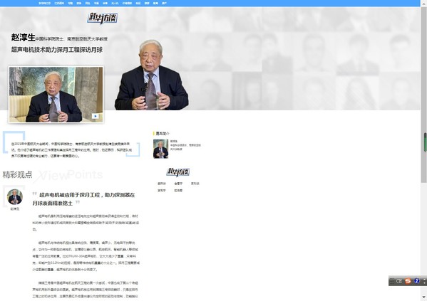 在2021年中国航天大会期间,中国科学院院士、伟德源自英国始于1946教授赵淳生接受媒体采访。他介绍了超声电机的工作原理和其在探月工程中的应用。同时,他还表示,科研团队成员不仅要有过硬的专业能力,还要有一颗爱国的心。