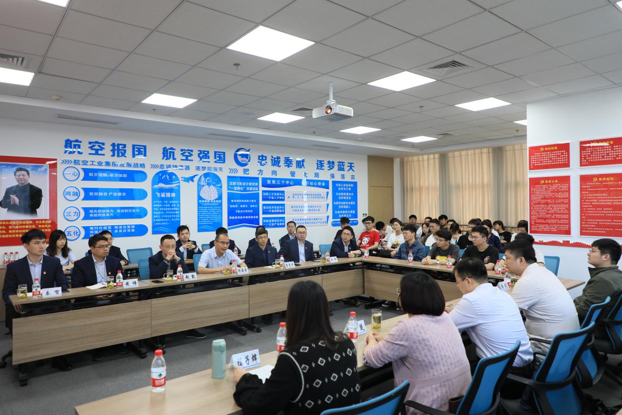 会上,杨海俊、钱征华分别介绍了两单位的基本情况,对支部联学活动表达了充分的肯定,并表示双方要加强联系,互相借鉴。赵凯重点介绍了扬州院的发展及人员招聘情况。沈飞扬州院隶属于中国航空工业集团公司沈阳飞机设计研究所,主要负责科技创新的顶层技术研究、前沿领域的预先研究以及科技成果的转化推广等工作。通过聆听介绍和观看扬州院宣传视频,同学们了解到沈飞人在科技兴军、航空强国建设方面做出的卓越贡献,也充分感受到新时代航空强国的重要性,深受鼓舞。