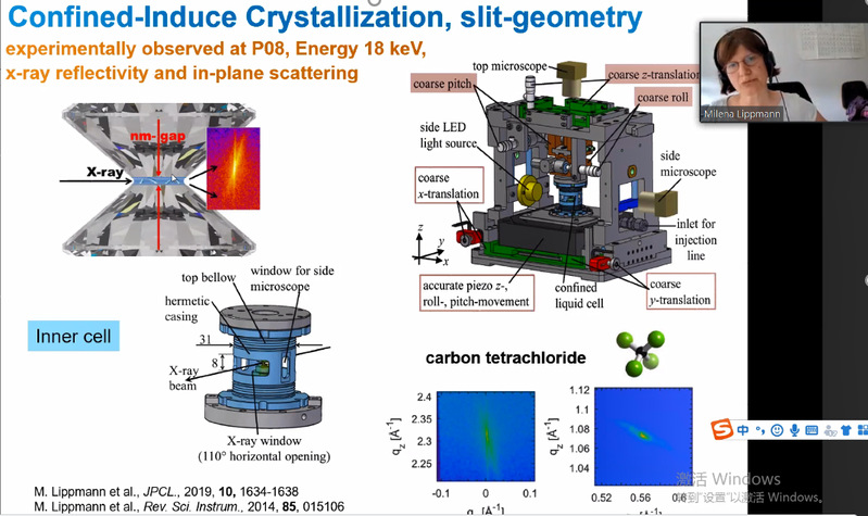 应力学中心王单讲师的邀请,德国Deutsches Elektronen-Synchrotron (DESY )研究所化学实验室负责人Milena Lipmmann教授于2021年6月10日做了题为“Liquid structure in nano-space probed by x-ray scattering methods”的学术报告。报告介绍了如何用X射线研究纳米级受限空间中的液体分布形态,分子结构等,以及在超材料、拓扑摩擦学、生物医疗等领域中的应用。Milena从实验的角度介绍了液体在受限空间中的相分布,表面效应及动力学特性,以及目前搭建的可压缩至纳米尺度受限空间实验装置的相关研究成果。她介绍了以钻石为基底,将水、四氯化碳、TMS等液体压缩至纳米尺度的空间中,用X射线散射观察到了明显的分子分层排列现象,以及接近表面的液体分子呈现取向性排列。此外,Milena还和与会人员讨论了相关学术问题,精彩的报告也为公司相关科学工作提供了借鉴作用。