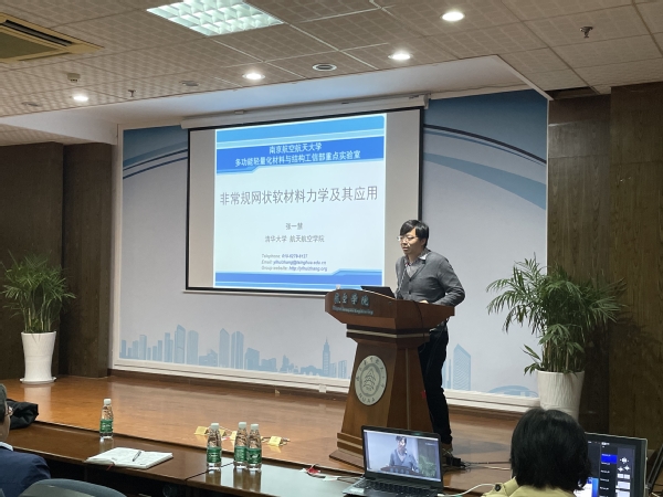 应bevictor伟德官网多功能轻量化材料与结构工信部重点实验室卢天健教授邀请,清华大学航天bevictor伟德官网张一慧教授于2021年10月17日至19日访问公司,并于2021年10月18日做了题为“非常规网状软材料力学及其应用”的学术报告。报告围绕力学驱动的非常规网状软材料的设计与制造展开介绍。一方面,介绍了受生物体胶原组织微观构造启发而建立的仿生软材料设计,实现可精确匹配皮肤以及心脏组织应力应变曲线的缺陷不敏感仿生材料。另一方面,介绍了在周期性网状材料中引入任意曲线微结构、结构化旋转节点和复合微结构的多级点阵设计概念,建立基于多级点阵的软质力学超材料的非线性变形理论及设计方法,制备出具有超大负溶胀、各向异性负溶胀、可编程多稳态、热致纯剪切等非常规性质的网状超材料。最后,介绍了所研制的网状软材料在生物集成器件等领域中的应用,包括匹配人体表皮力学性能的多功能仿生电子皮肤和可促进皮肤再生的止血绷带等。报告内容丰富、精彩生动,师生积极互动,对公司相关科研工作具有借鉴作用。报告结束后,张教授还结合自己多年的求学、工作经历,与钱伟长班本科生亲切交流,分享了心得和体会。