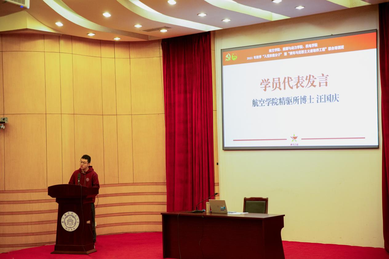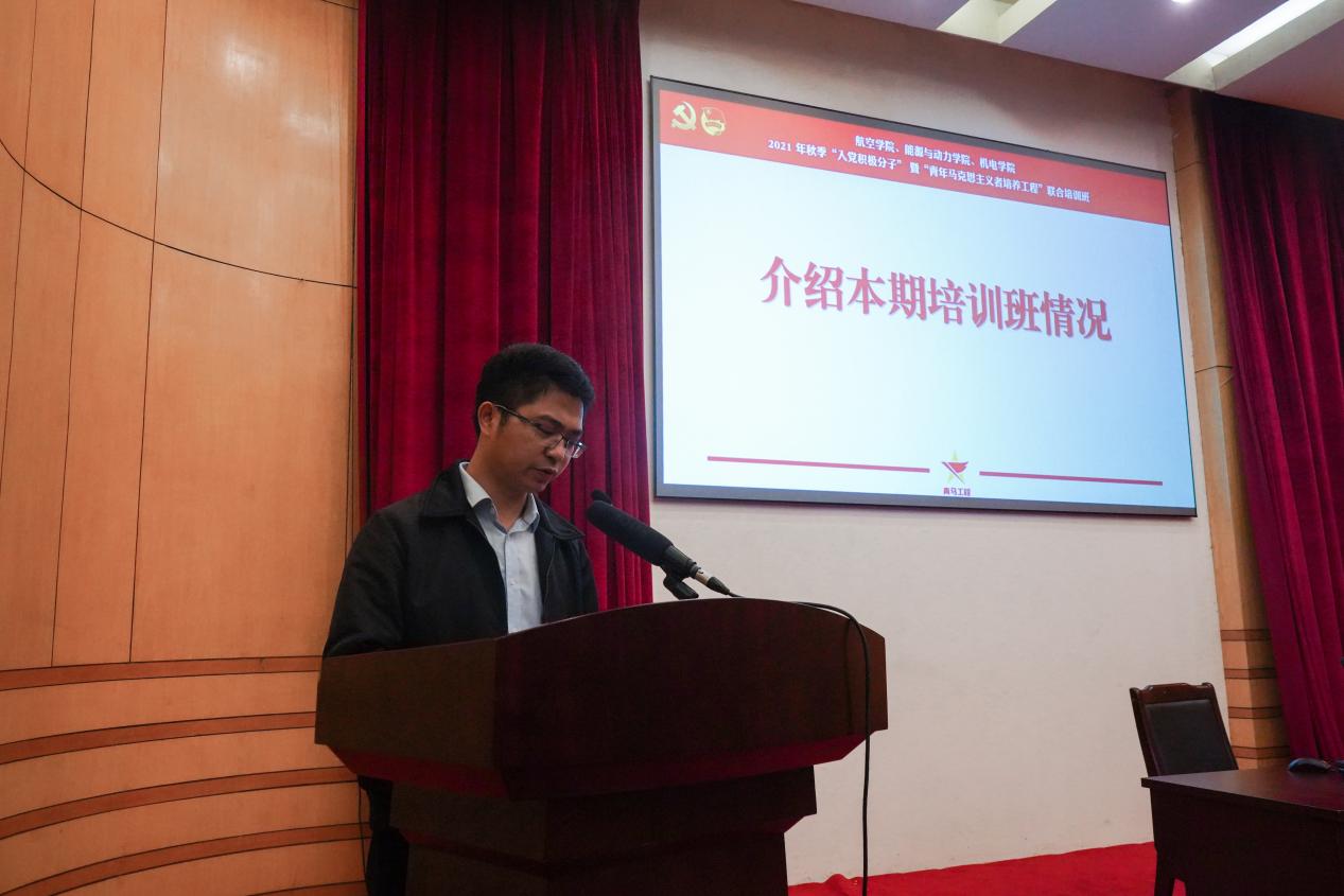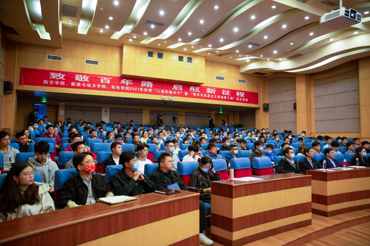 为深入开展党史学习教育,认真学习贯彻习近平总书记在庆祝中国共产党成立100周年大会上的重要讲话精神,11月6日上午,bevictor伟德官网、能源与动力学院、机电学院联合举办的2021 年秋季入党积极分子暨青年马克思主义者培养工程(简称“青马工程”)联合培训在明故宫校区逸夫报告厅顺利开展。航空公司党委书记袁智强,能源与动力公司党委书记王中叶,机电公司党委书记刘虎,员工处副处长王霄,校团委副书记、机电学院党委副书记董羽,各学院组织员、团委书记、辅导员老师以及本期培训班部分成员出席了本次活动。开班仪式由航空公司党委副书记佘明主持。