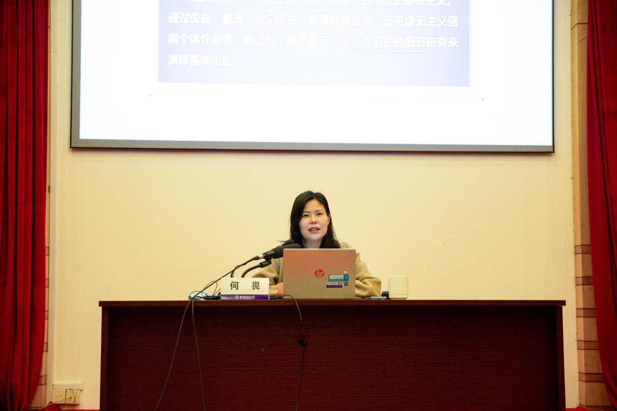 第二场培训由马克思主义学院副经理何畏带来《社会思潮与国家意识形态安全》讲座,她从当前中国社会思潮、建设社会主义文化强国、用社会主义核心价值观引领社会思潮三个方面为我们解读了如何努力提高马克思主义素养、自觉抵制错误思潮,以生动形象、喜闻乐见的形式阐述了为什么要建设社会主义核心价值体系和核心价值观,如何用社会主义核心价值观引领社会思潮,将经典案例和知识点结合起来,循循善诱,为同学们的正确历史观的建立做出重要指引。