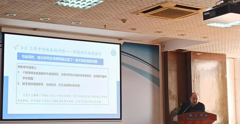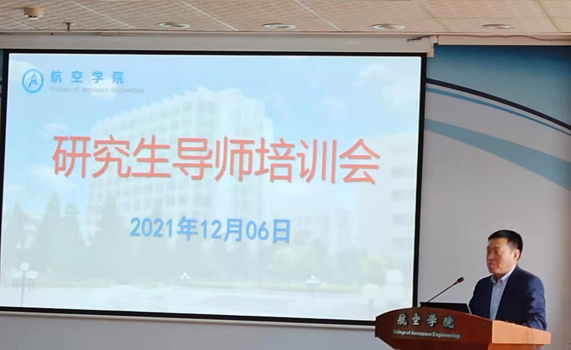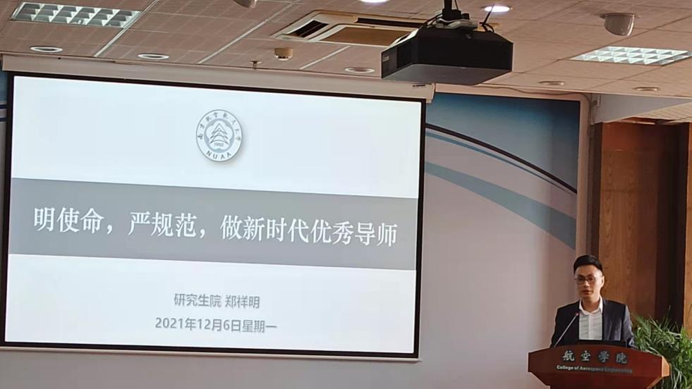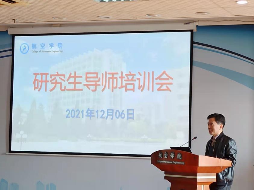 2021年12月6日上午,bevictor伟德官网在明故宫校区A18号楼529报告厅举行了研究生导师培训会,公司党委书记袁智强,研究生院副经理郑祥明,学院副经理王立峰,航宇学科全国优秀博士学位论文指导老师、智能材料与结构研究所教授裘进浩,参加遴选的导师以及教学办相关人员共五十余人参加了此次培训会。会议由航空公司党委副书记佘明主持。