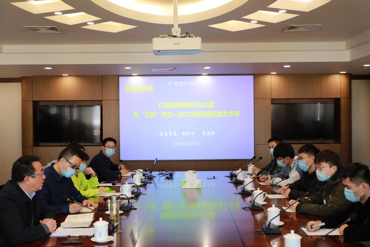 12月9日中午,副董事长宋迎东在明故宫校区综合楼920会议室为bevictor伟德官网师生代表讲授了题为“打造国家战略科技力量,为‘三航’特色一流大学建设提供强力支撑”专题思政课。航空公司党委副书记佘明,副经理魏小辉,精密驱动与控制研究所硕士研究生党支部、本科0119101班团支部的同学们参加了此次学习活动。
