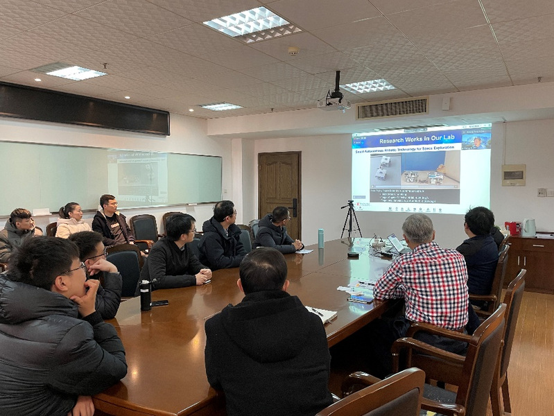 报告结束后,Zhu教授与包括金栋平教授、陈卫东教授、文浩教授、陈提教授、康俊杰副教授等在内的与会老师、员工积极地交流了刚柔耦合绳系系统的动力学与控制和绳系卫星在轨试验设计等方面的问题。
