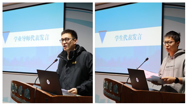 赵耿楠和李晨骁作为员工代表分享了他们对于学院的期许,汇报了在校学习和生活情况,表达了要努力学习、追求卓越、立志“航空报国”的决心。