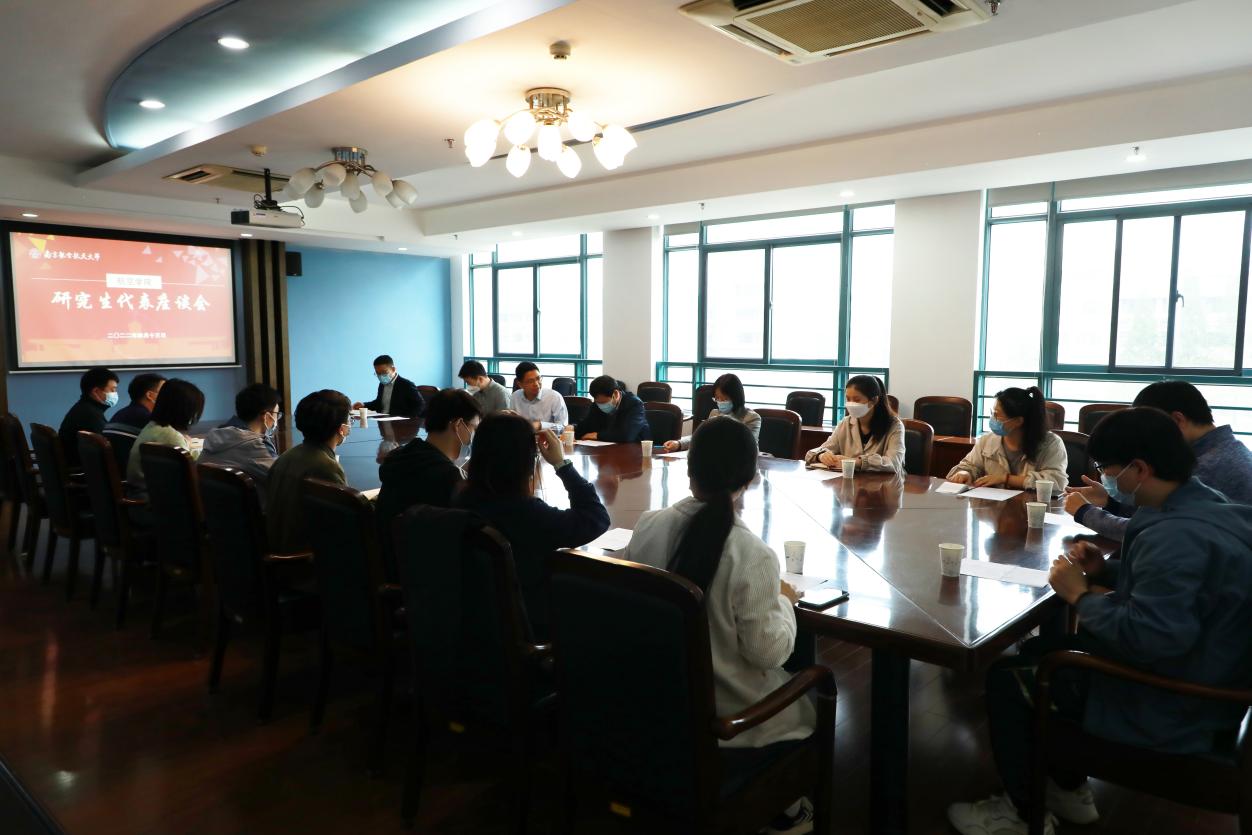 与会研究生代表介绍了个人在校科研和学习的情况,并结合校园封闭管理的背景,从生活保障、文体活动、党支部建设等多方面提出了意见建议。与会领导对研究生代表提出的需求进行了一一回应。