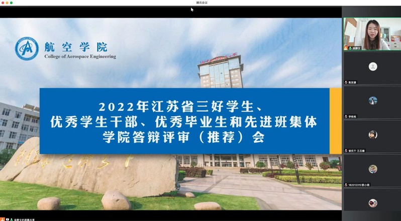 受疫情影响,此次评审会通过腾讯会议在线进行,经过员工自主申报、年级审核,共有19名本科生、9名研究生和4个班集体入围学院评审环节。答辩员工从个人学习、科研创新、社会服务等多个方面进行展示,他们中有绩点4.3,斩获国家奖学金、优秀员工奖学金、学业奖学金等多项荣誉的学霸;有热衷志愿服务、累计服务时长超过200小时的优秀志愿者;有手握7篇SCI论文,追求卓越的科创达人……同学们意气风发,尽展航空学子风采。