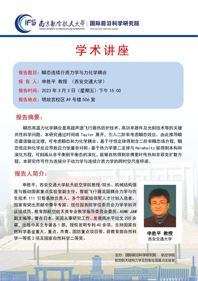学术报告会通知(申胜平教授)