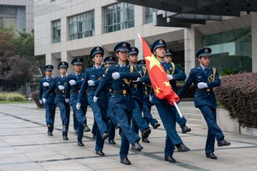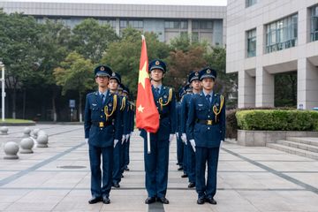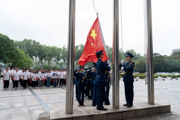 上午7时,升旗仪式正式开始。国旗班迈着铿锵有力的步伐护送国旗入场,伴随着激昂的《义勇军进行曲》,升旗手振臂展旗,五星红旗冉冉升起。全体师生肃立,高唱国歌,以庄严的注目礼表达对祖国的赤诚热爱。